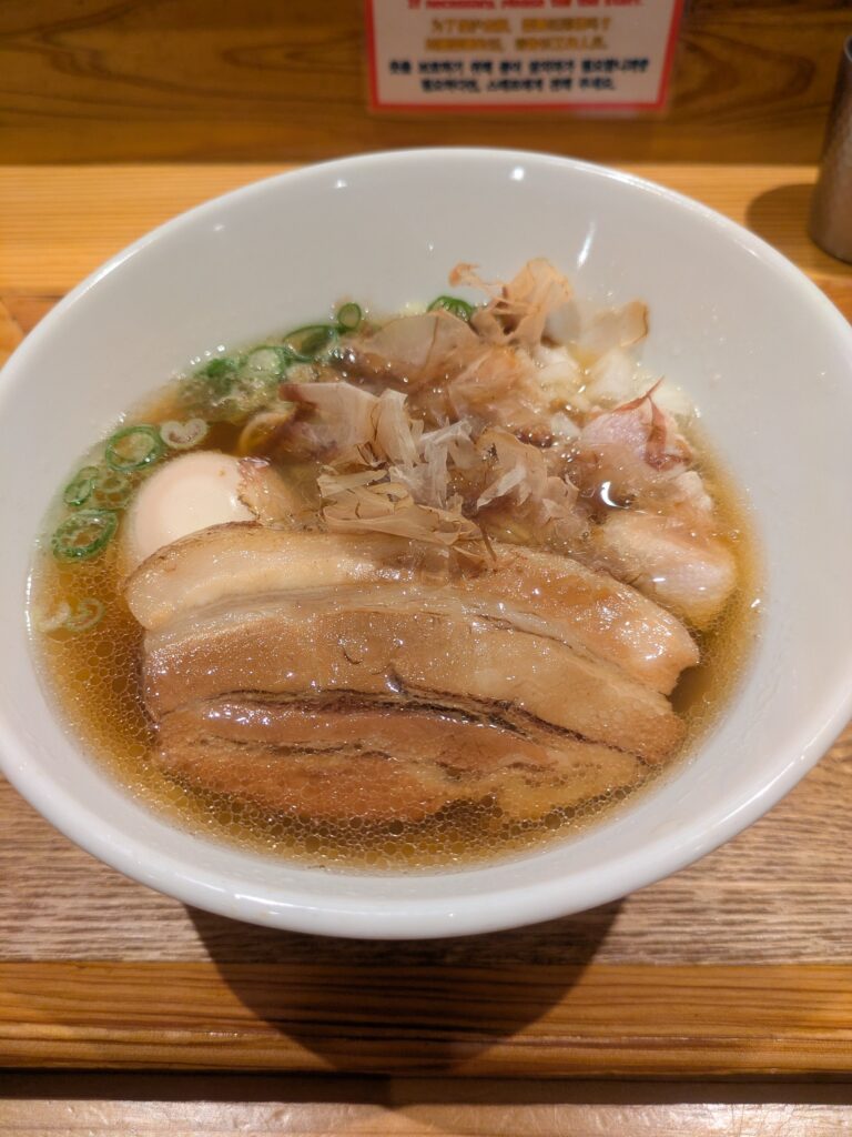 鶏ガラスープに鮪節、甘みのあるスープでした